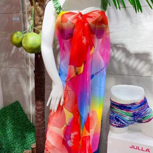 Vibrant Printed Bikini Cover-Up that Doubles as a Stylish Shawl and Sarong