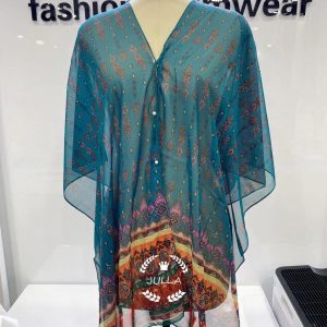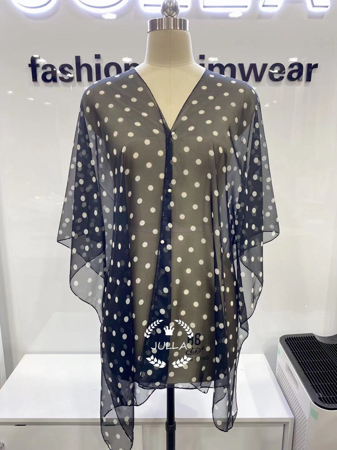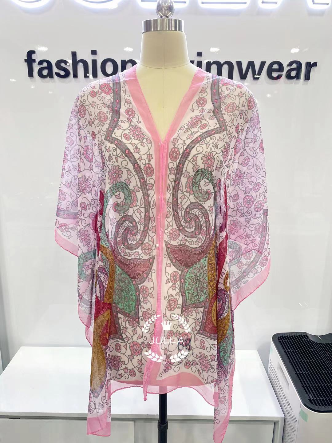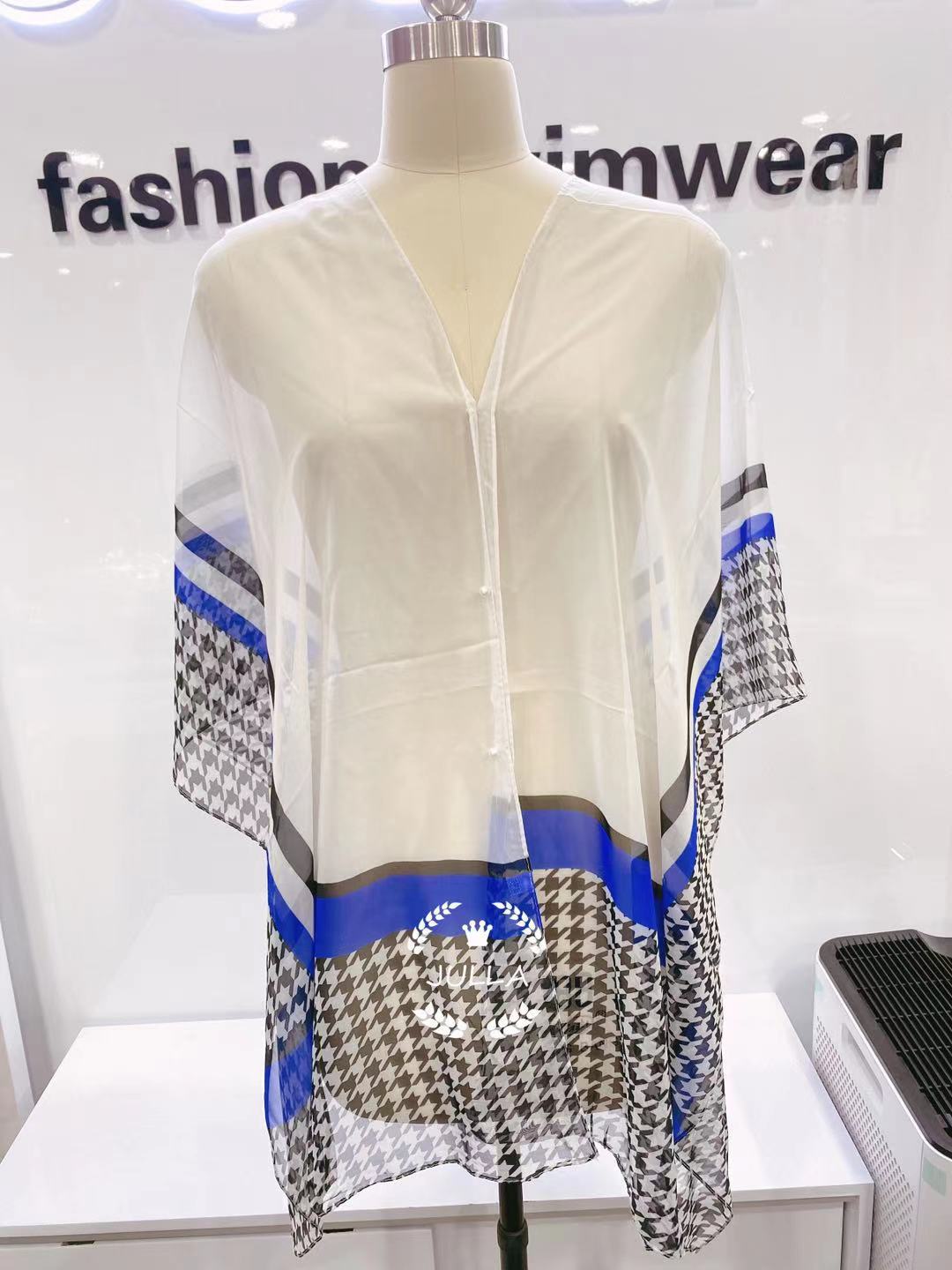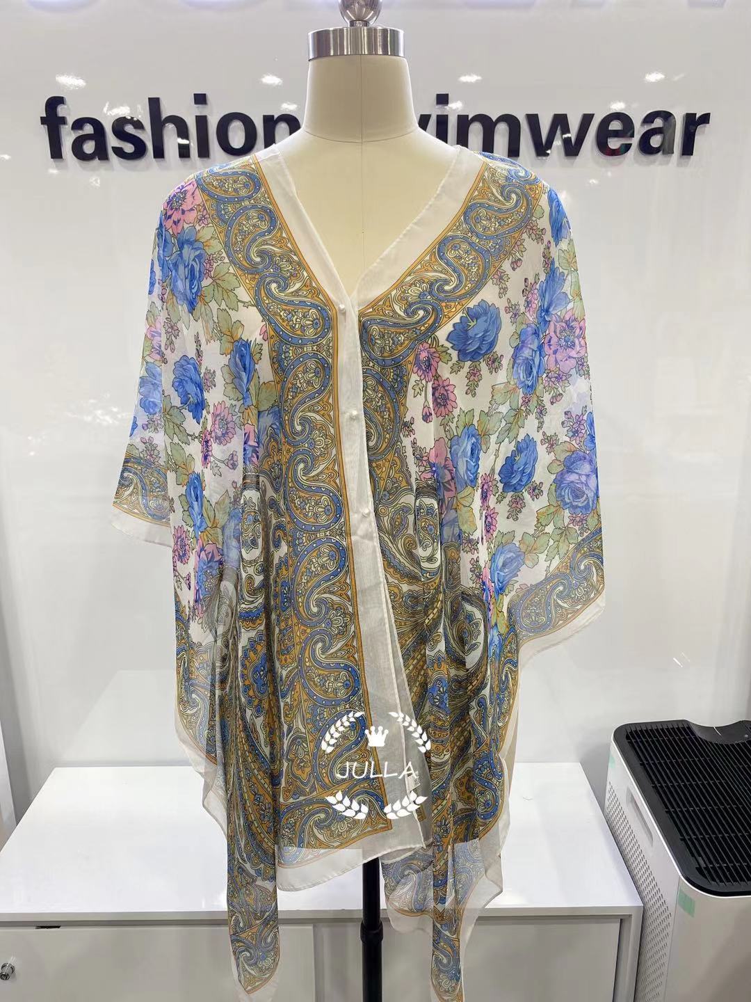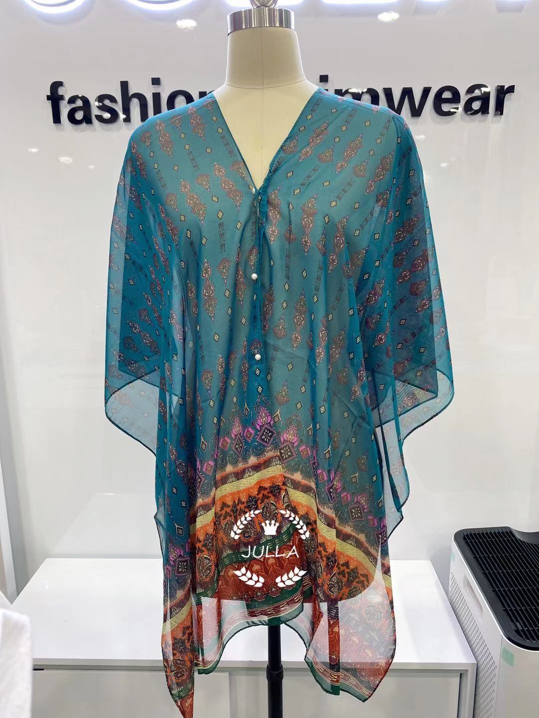 Vintage Printed Sun Protection Chiffon Pearl Button Scarf Beachwear in Stock for Beach Photoshoot Sunshade and Belly Cover-up.